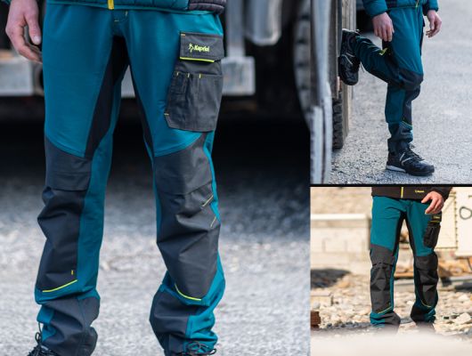 dinamične radne hlače sa posebnim džepovima za alat na obje noge i praktičnim elastičnim manžetama na gležnjevima s gumiranim donjim dijelom pretinci za alat džep za štitnike za koljena s ulazom na vrhu stražnji džepovi s čičkom, pojačanjem i obrubom praktični džep za telefon i metar s plutajućim dnom čekić kuka trostruki šav elastične hlače s gumiranim dnom elastični pojas za bolje pristajanje glavna tkanina: 54% najlon / 39% poliester / 7% elastan pojačanja: 98% poliester / 2% elastin