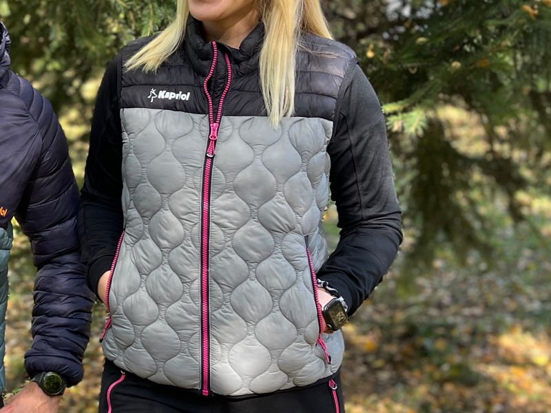 urbani prsluk THERMIC - woman line zaštita od vjetra i hladnoće lagana i mekana ispuna 100 % Nylon Taffeta ispuna 100 % Poliester Thermore 100 g/m2 podstava 100 % nylon Taffeta dno prsluka i rukavi imaju zaštitnu elastičnu traku smanjeni prodor hladnog zraka zaštita ispod glavnog patenta veliki džepovi sa patetnom veličine od XS do L